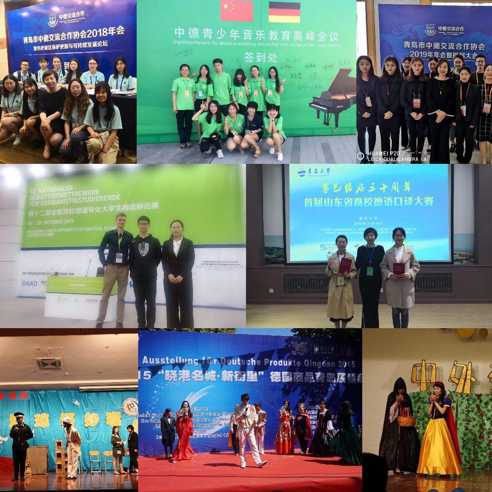 国内交流方面,我系定期邀请国内外知名专家学者讲学,学生有机会领略学术的魅力和知名学者的风采;与青岛市中德交流合作协会、青岛市中德生态园下设的青岛中德体育文化传播有限公司合作共建实习基地,选派学生进行毕业实习或担任重大活动的志愿者,让学生得到充分的锻炼和提高。