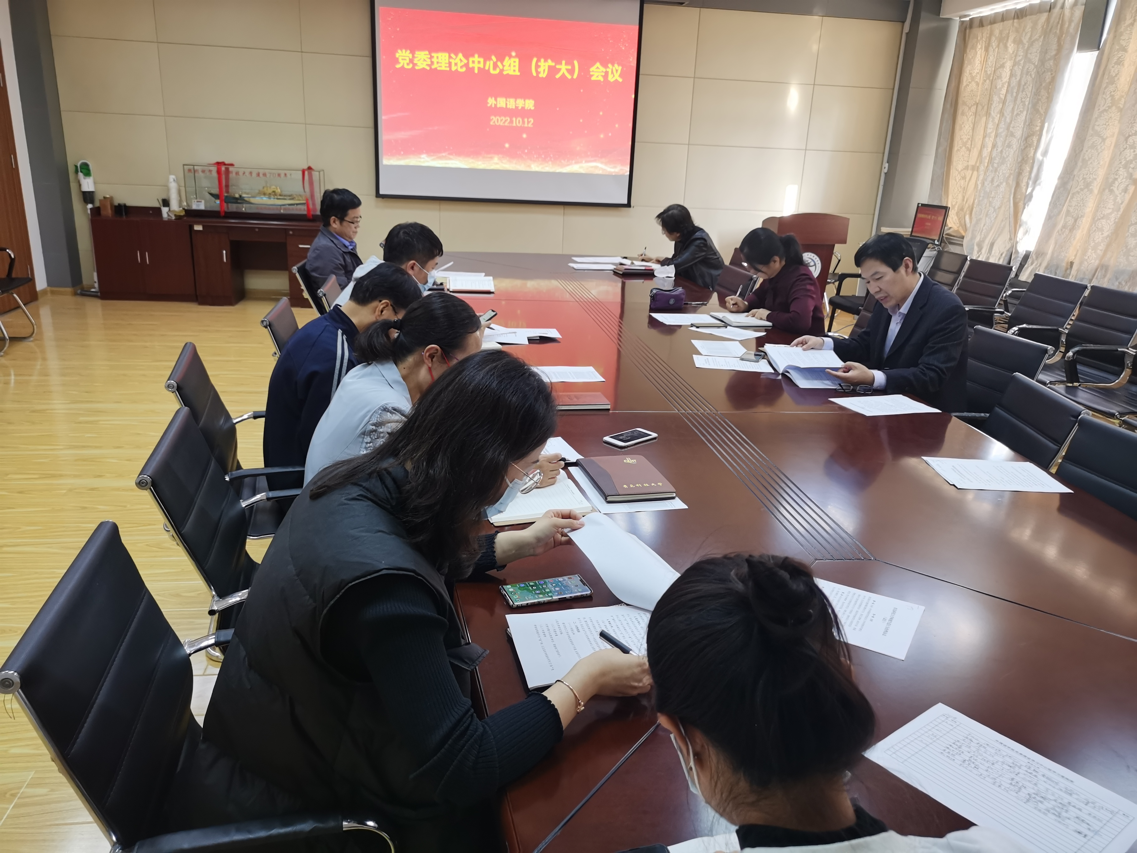 党委理论学习中心组要率先加强学习,带领全院师生自觉加强理论武装,弘扬主旋律,传播正能量,凝聚全院师生团结奋进的强大力量。要充分利用学科优势加大对我国优秀传统文化的对外弘扬,讲好中国故事,传播好中国声音,阐释好中国特色。带领全院师生聚焦“特色鲜明、走在前列”的高水平大学建设,用实干行动和优异成绩迎接党的二十大胜利召开。