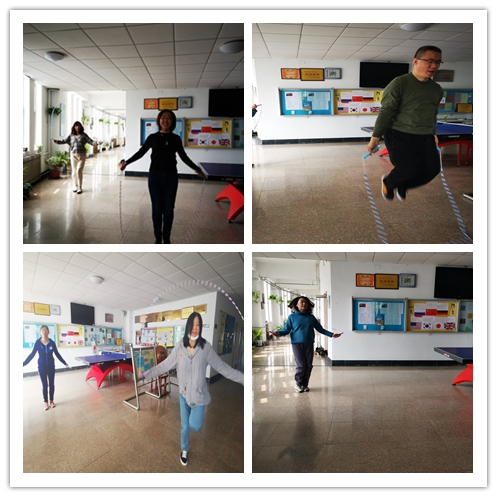 领导的一声令下,比赛拉开了帷幕。比赛时间虽然只有一个多小时,但比赛过程却非常激烈。参赛的老师们挥动着双臂,跳跃着双脚,脚尖与地面摩擦着谱写出一曲动听的乐章,手中的摇绳在空中舞出一条条魅力的曲线,每位老师都在为能用最短的时间跳出更多的次数努力,比赛在如火如荼的进行着。