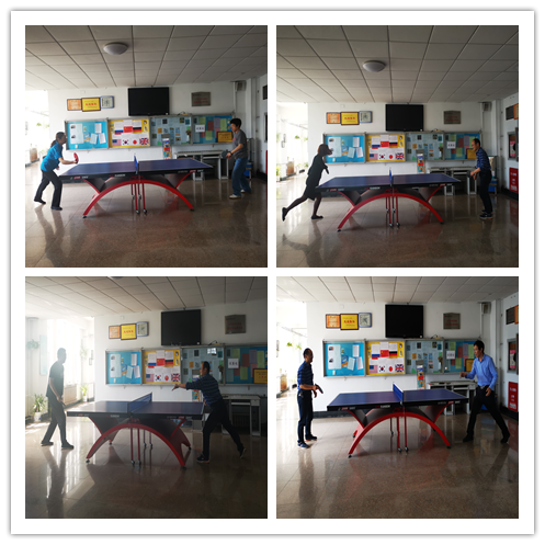领导的一声令下,精彩的比赛拉开了帷幕。第一阶段的淘汰赛之后,分别选拔单打男子、女子前8名队员和双打前3名队员进入下一阶段的比赛。经过几轮紧张的比拼,吴鸿志老师获得了男子单打冠军,曹静娴老师获得了女子单打冠军,双打比赛也在喝彩声中决出冠亚季军。最后,在男单冠军和女单冠军的友谊赛中,比赛圆满结束。