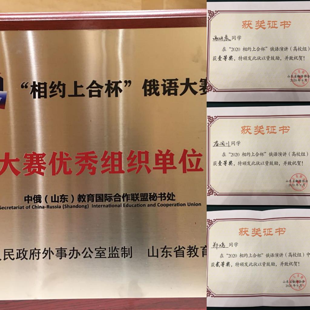 2020年9月25日,由山东省人民政府外事办公室和山东省教育厅指导,国际俄罗斯语言和文学教师协会和中俄(山东)教育国际合作联盟共同主办,山东省翻译协会和中国-上海合作组织地方经贸合作示范区共同组织承办的“相约上合杯”俄语大赛在山东济南举行。来自山东省内31所高校的84名俄语学子齐聚济南,共享这一省内参加高校最多、参加人数最多的俄语盛事。