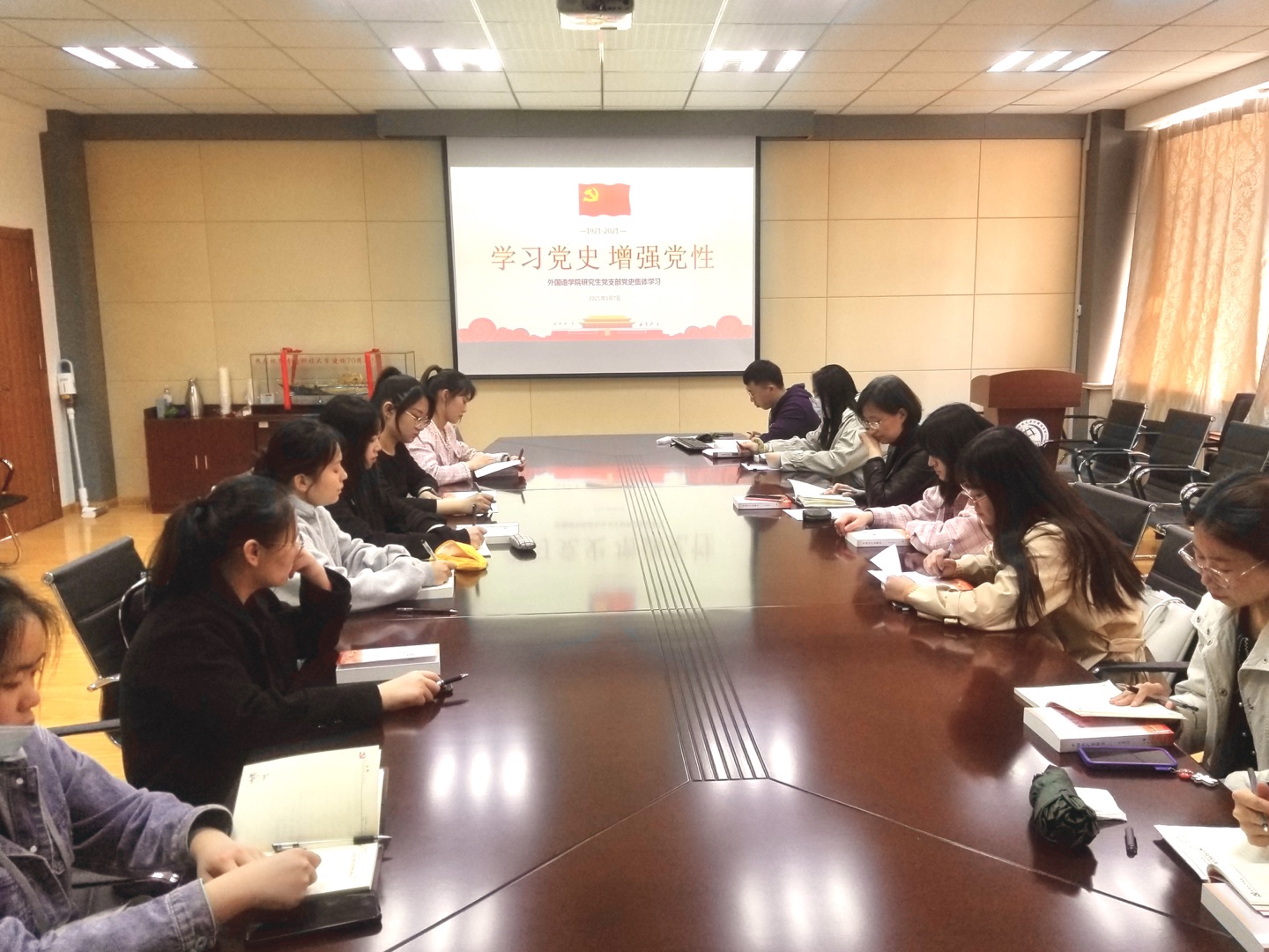 研究生党支部在517会议室开展党史集体学习活动。