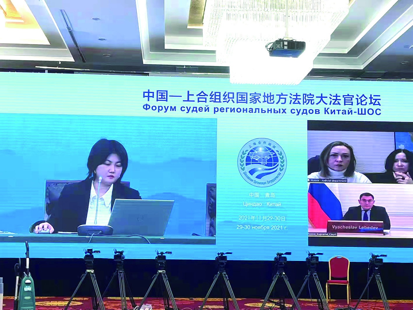 正是由于专业知识的积累以及对文化的了解,李阅川才能在中国-上合组织国家地方法院大法官论坛中表现突出。“很庆幸在大学中参加了许多竞赛和活动,让我积累了经验,也很感谢曹老师平时对我们的教导,有了这些,我在翻译的时候才能做到得心应手,不至于手忙脚乱。”