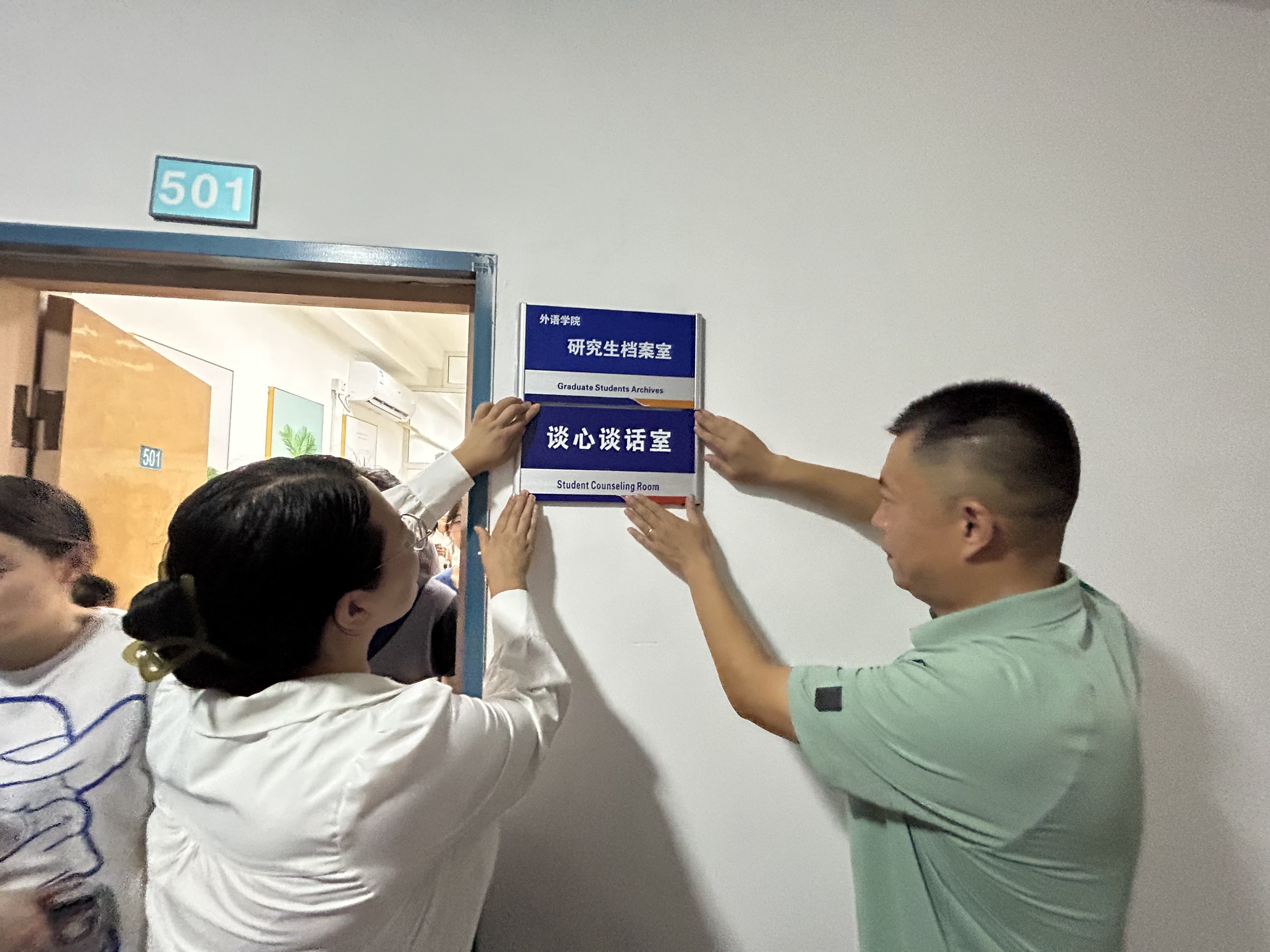 学工办主任刘妍君为“谈心谈话室”进行揭牌。