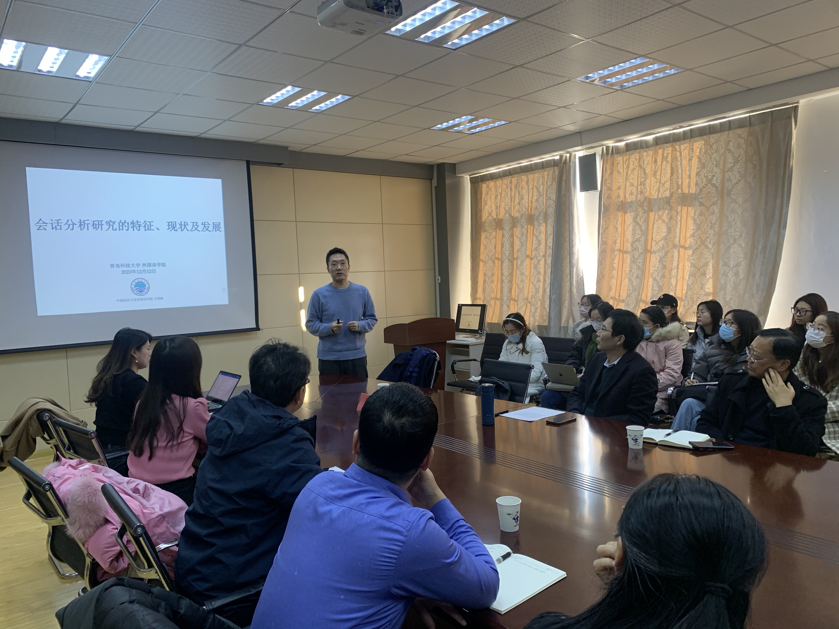 邀请,在外语楼517会议室做了题为《会话分析研究的特征、现状与发展》的学术讲座。讲座由院长尹洪山主持,7mmtv
