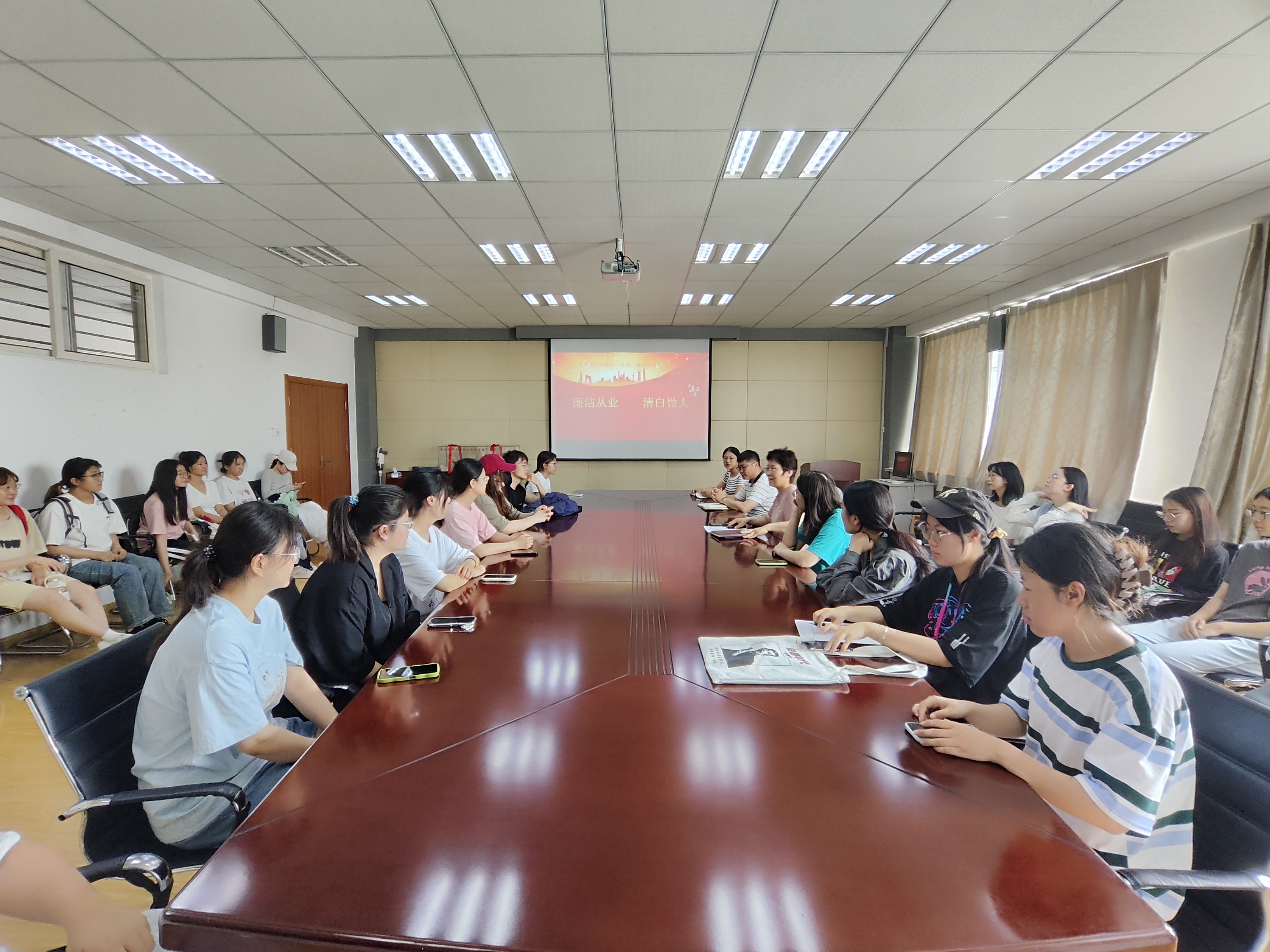 党委书记曲斌艳为毕业生党员讲授最后一课---廉洁思政课,曲斌艳以“廉洁从业、清白做人”为题,深入解读廉洁的内涵,指出廉洁是党性的内在要求和外在表现,和毕业生党员一起深入学习了《中国共产党纪律处分条例》违反廉洁纪律的处分,对毕业生党员提出廉洁修心和修身要求,要求毕业生党员面对诱惑必须时刻保持警惕;面对权力必须时刻保持清醒;面对幸福必须时刻保持珍惜;面对条例必须时刻保持敬畏。寄语毕业生党员:坚守廉洁底线,拥抱职业生涯的一路繁花。
