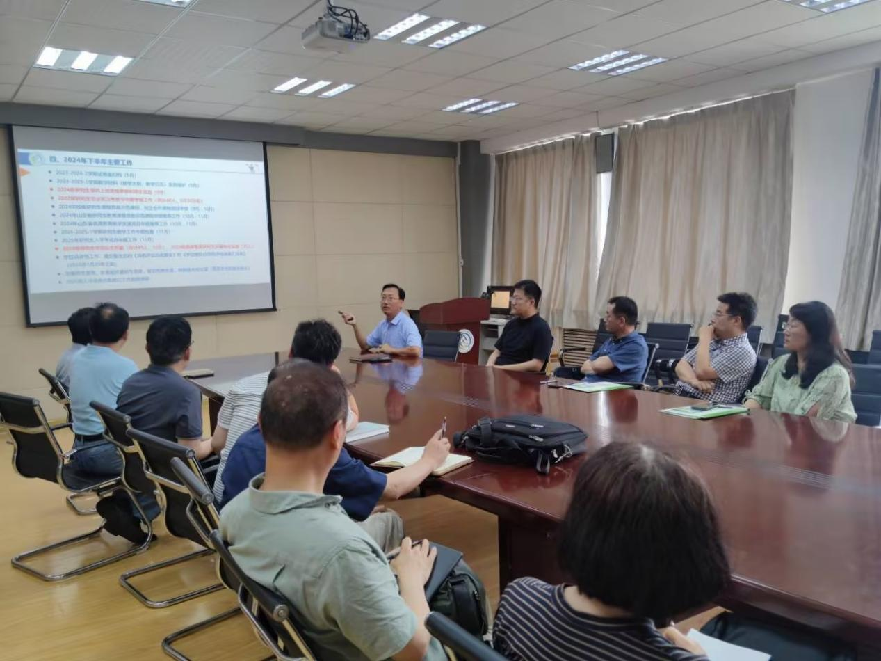上半年研究生教育教学工作进行了总结。然后对研究生教育教学相关文件进行了传达,重点解读学习了《教育部关于深入推进学术学位与专业学位研究生教育分类发展的意见(教研〔2023〕2号)》及《翻译专业学位类别硕士学位论文基本要求(试行)》两个文件。