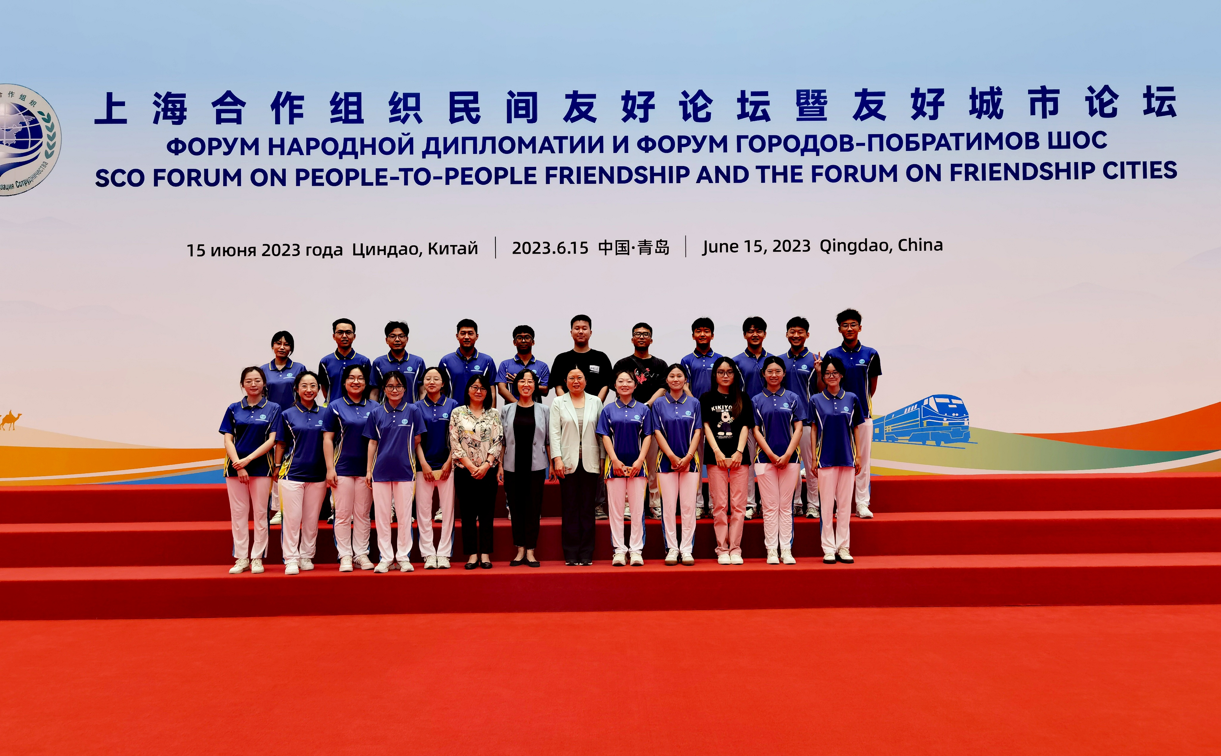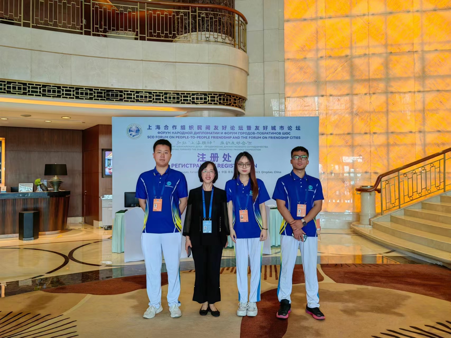 俄语系共派出3名教师,28名学生志愿者参与活动的语言志愿服务工作。其中曹静娴、张帘秀、蒋春丽老师分别负责乌兹别克斯坦大使馆、白俄罗斯大使馆和彼尔姆市长代表团的前期联系、信息对接、日程制定、会议期间的全程陪同翻译以及晚宴的翻译工作;卢桔汀、史常顺、李宗坤同学负责杜尚别市长团、比什凯克市市长团以及上合友好青年代表团的接待与陪同翻译工作;赵梓如、周方雪等7名同学负责海尔、大鲍岛、海信、小鱼山、青啤博物馆等外宾考察点的俄语讲解与介绍工作;其他学生分别在会见、宣传、新闻宣传媒体等部门进行语言志愿服务工作。