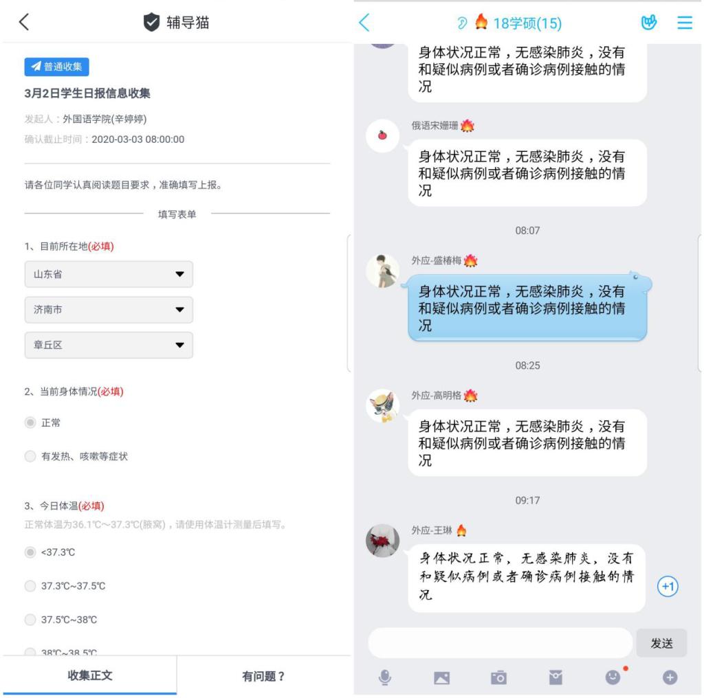 建立起“院领导—系部主任—教师”三级联络教工体系和“副书记—辅导员—学生骨干—普通同学”四级联络学生体系,确保信息日报工作覆盖全面、及时上报。实行疫情日报制度,通过“今日校园”app和QQ群健康打卡制度,不断更新每个师生的具体情况,掌握师生每天所在地、身体状况、计划返校时间等情况。通过全覆盖、无死角的“地毯式”摸排,确保全面排查师生情况,提高了信息报送及时性与精准度。