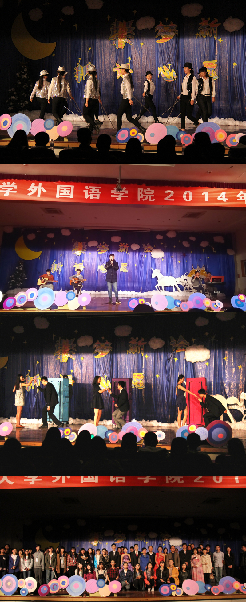 将自身的特色展现的淋漓尽致:日语、韩语外教身穿自己本民族服装,大家带来了的动听歌曲感染了全场;俄国外教别出心裁地将俄罗斯民族歌曲《喀秋莎》与《小苹果舞》结合起来,创意十足;德国外教及德语专业的学生们借这个舞台表演《执灯相伴》来庆祝本国的圣马丁节,寓意深刻。他们的节目不仅向全校展示了7mmtv