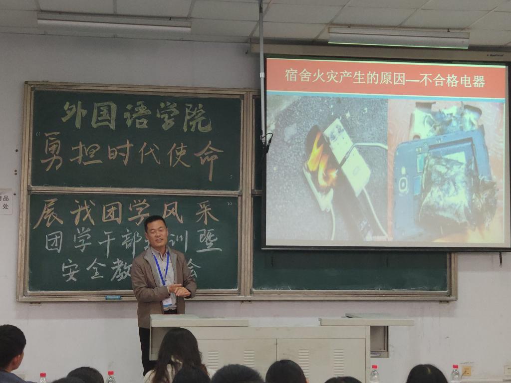 活动中,严增兴围绕宿舍安全为全体学生干部作专题讲座。他结合自身近十年的消防安全工作经验,从引发火灾的原因、灭火的方式以及如何逃生几个方面阐明了防火的重要性,并通过典型案例,深入浅出介绍了消防安全知识,提高了师生正确面对和处理火灾的能力,将安全观念根植于学生内心,起到了良好的示范效果。宋飞指出,安全无小事,希望同学们积极主动地学习消防知识并掌握基本的消防技能,在生活中合理使用用电器材,提升消防安全防范意识和火灾自救能力。