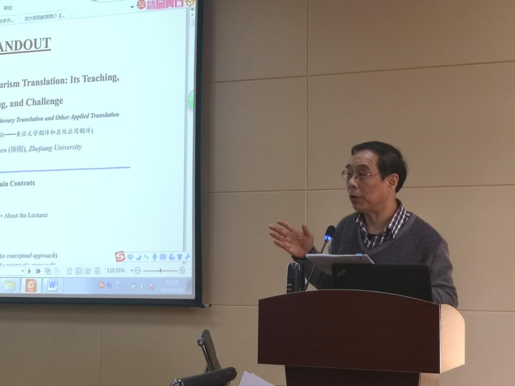 翻译硕士师生带来了一场题为“旅游翻译教学及问题漫谈——兼谈文学翻译和其他应用翻译”的报告。报告会由吕耀中副院长主持。