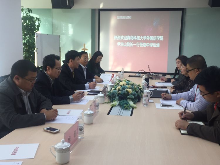 一行6人首先在中译语通科技(青岛)有限公司人事法务部总监王庆辉的带领下,参观了公司文化长廊、大数据中心、议员中心,通过大数据中心看到了全球实时传回的翻译大数据,并试用了实时翻译呼叫器,纷纷对翻译中应用的新技术感到赞叹。同时,还参观了员工文化中心、休闲室等员工生活休息场所,为进一步合作打下了基础。