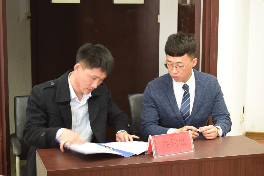 “宿舍文化建设月”活动的通知》。分团委书记贾明明分别于院学生会主席王晓琦、自律委主席何忠超签订了《学生自我管理协议》《文明宿舍公约》。