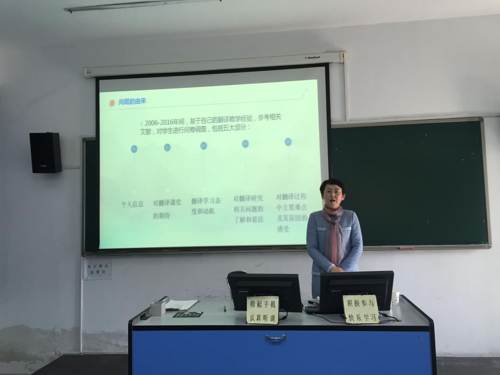 院长卞建华教授应邀在外语楼418室作了题为《多元文化语境下的翻译与翻译研究---兼谈外语学科项目申报》的报告。报告会由尹洪山院长主持,副院长吕耀中、副院长康宁及部分教师和研究生参加。