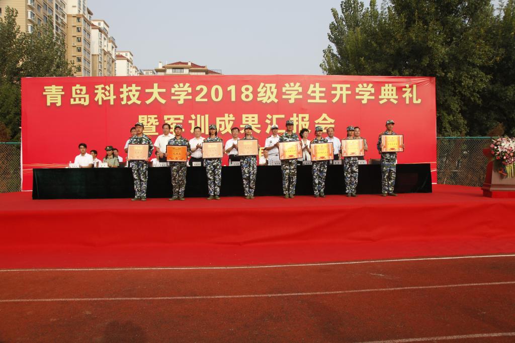 获得军训先进营称号,阅兵方队获得军训先进连称号,辅导员贾明明获得优秀指导员称号。