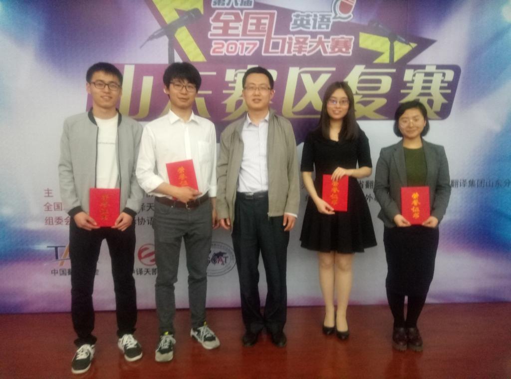派出的选手不负众望,16级MTI的王晓南、王策和王露原获得三等奖,英语141班的常菁获得优秀奖。英语系丁超老师获得优秀指导教师奖。山东大学、中国海洋大学和7mmtv