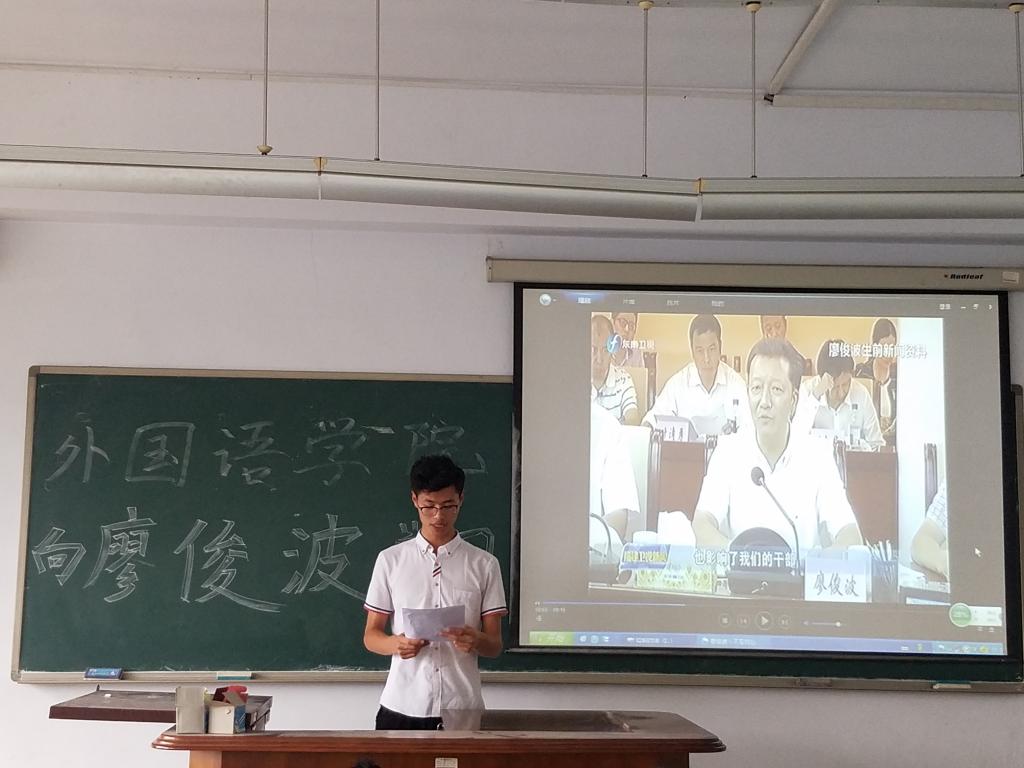 学生党支部开展了“学廖俊波精神,做优秀大学生”主题教育活动。全体党员、入党积极分子、学生骨干参加了本次活动。大家一起观看了廖俊波同志先进事迹的新闻报道,并将自己的心得体会进行了分享交流。学生会体育部副部长付振华说,廖俊波同志任职期间,牢记党的嘱托,尽心尽责,带领当地干部群众扑下身子、苦干实干,以实际行动体现了对党忠诚、心系群众、忘我工作、无私奉献的优秀品质,是当代大学生学习的楷模。我们要向廖俊波同志学习,不忘初心、扎实工作,真心实意为同学们服务。大家纷纷表示,要以廖俊波同志为榜样,苦干实干,做一名优秀的当代大学生。