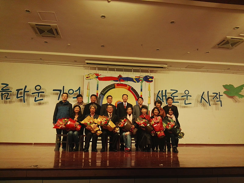 姜德杰院长向为中韩两国文化交流做贡献的韩国社报协会金兴基会长、BRcomm朴钟先代表理事、群山市政府中国代表处尹锡烈代表颁发感谢牌。接着便是毕业生代表刘建勇、13级在校学生代表闫丽依次发言。然后活动进入献花合影阶段,到场学生向辛勤育人、无私奉献的教师们说声:您辛苦了!感动与温情瞬间充斥了全场。之后,精彩的节目表演开始了。徐乐瑶、田文文、刘晓旦等同学表演的舞蹈《给你看》,用震撼的音乐燃烧热情;梁辉同学带来的歌曲《如果没有你》,声音婉转动听;小品《总监嫁到》,笑点颇多;李钟行同学和肖羽宣同学带来的英文歌曲《Buauty And A Beat》和照应主题的韩文歌《Hey Mama》,引来韩国代表们的欢呼;相声表演《满腹经纶》,搞笑幽默,将现场气氛再次炒热;脍炙人口的朝鲜族民歌《阿里郎》,连韩国代表们也手舞足蹈地跟着跳起来;耿嘉微同学与王佳颖同学带来的歌曲表演《思念是一种病》和牟亚鑫、李雪冉等带来的激情舞蹈表演《Boom Clap》,也同样精彩纷呈;最后是由张亚双、孟静等演绎的关于一名现代女生穿越到古代与皇帝相爱的韩语话剧《扑通扑通Love》,使全场陷入了韩剧的浪漫气氛中。活动在南老师跟崔老师领唱、全体同学合唱的韩文歌曲《사랑해》中完美落下帷幕!