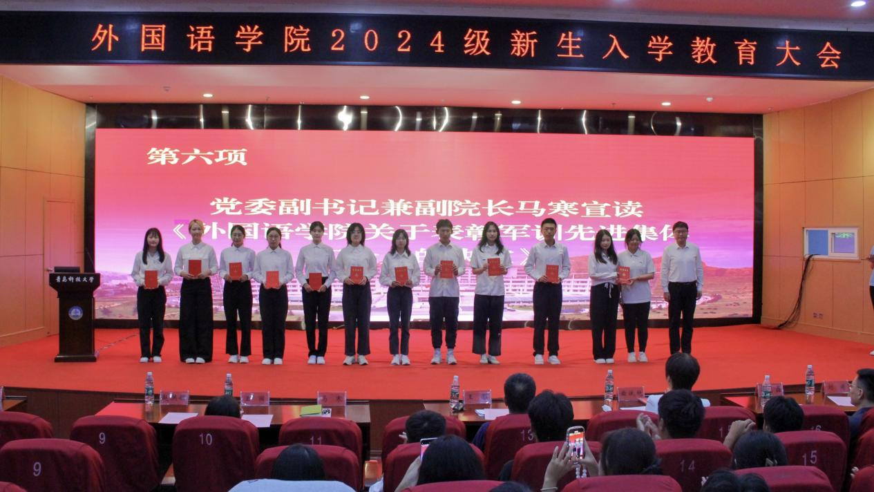 党委书记曲斌艳、院长王灏、党委副书记兼副院长马寒、副院长刘靖、副院长赵洪娟、系主任、辅导员、2024级全体新生参加会议。