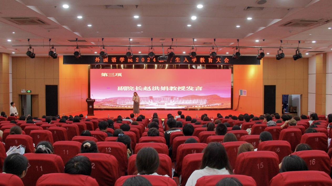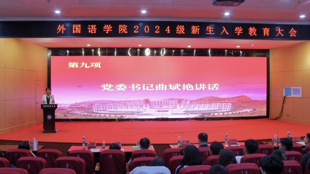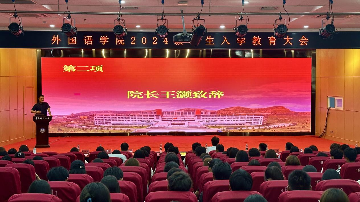 曲斌艳对全体2024级新同学的到来表示热烈欢迎,并向同学们提出了三点希望:一是做一个专业素质过硬的人,强化听说读写基本技能,磨炼过硬的语言基本功和专业素质,为自己未来择业和就业打下坚实的基础。二是做一个综合素质全面的人,全面提升自己的身体素质、心理素质和自我掌控能力,做好时间管理、目标管理、行动管理、情绪管理和学习管理,以应对各种挑战和机遇。三是做一个视野格局在线的人,从小我走向大我,拓宽自己的视野,具备宏大的格局,认清方向,把握规律,主动将自己融入到时代发展浪潮中,在激烈的竞争中脱颖而出。