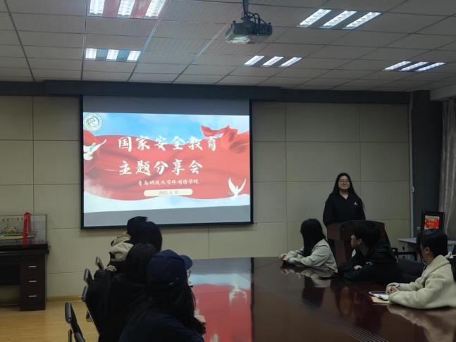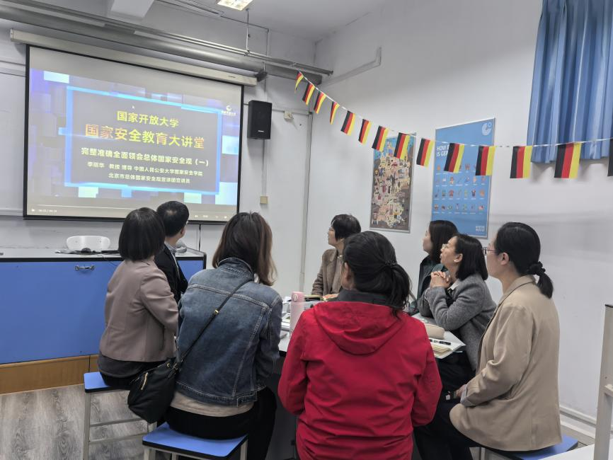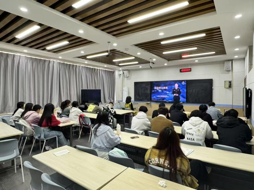 在教学楼张贴保密安全教育海报,组织全体学生观看“千万师生同上一堂国家安全教育课”直播、参与“全国大学生国家安全知识答题”线上测试、创作国家安全主题多语种海报等,以视频、文字、图片等方式普及反诈、保密等安全知识。