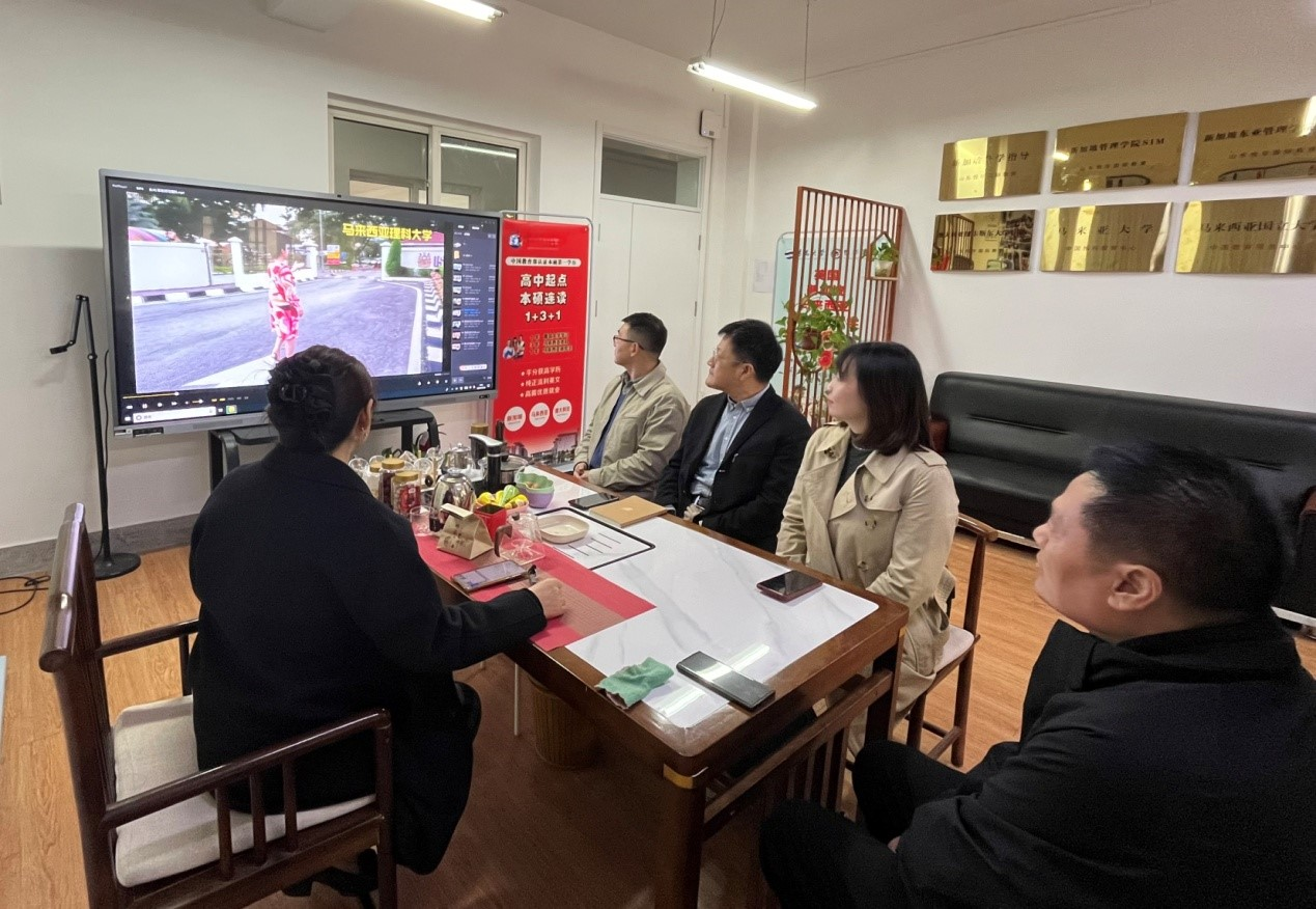一行还来到悦华国际教育集团,董事长陈玲对集团发展现状、业务拓展规划及人才需求作了详细介绍。她表示,语言专业的学生,语言能力是基本功,企业更需要具有良好学习能力、沟通协作能力的复合型人才。双方围绕项目合作、学生实习实践、人才培养模式等议题展开深入讨论,达成了多项共识。