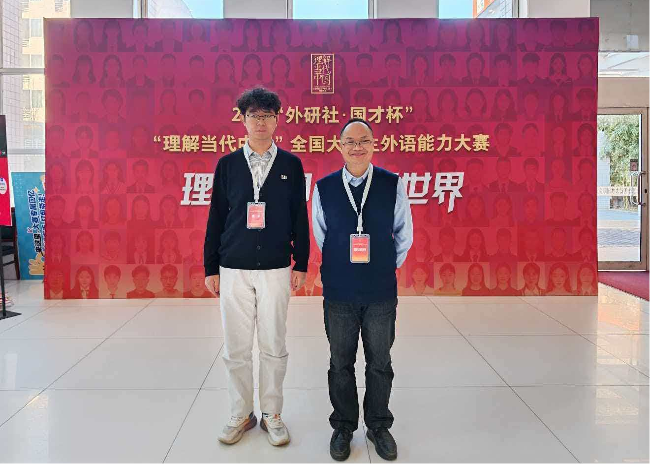 24级翻译硕士徐佳昊同学凭借其卓越的双语转换能力与深厚的跨文化沟通素养,从全国顶尖选手中脱颖而出,冲进国赛50强,勇夺国赛银奖。另外,综合能力赛项英语234班武采辰同学荣获国赛铜奖。