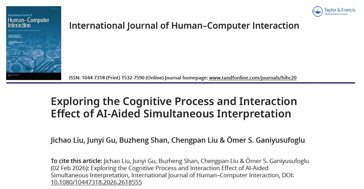 本研究采用定量与定性相结合的混合研究方法,从行为表现与认知过程等多个维度,初步揭示了译员在人工智能辅助环境下的多阶段认知处理机制,探讨了人机协同的工作效能与认知负荷变化规律,为探索符合认知规律的智能语言辅助方案提供了实证支撑。该成果深化了对智能辅助同传认知过程的理解,也为面向人机协同的语言服务人才培养模式改革以及行业数字化转型提供了理论参考与实践方向。
