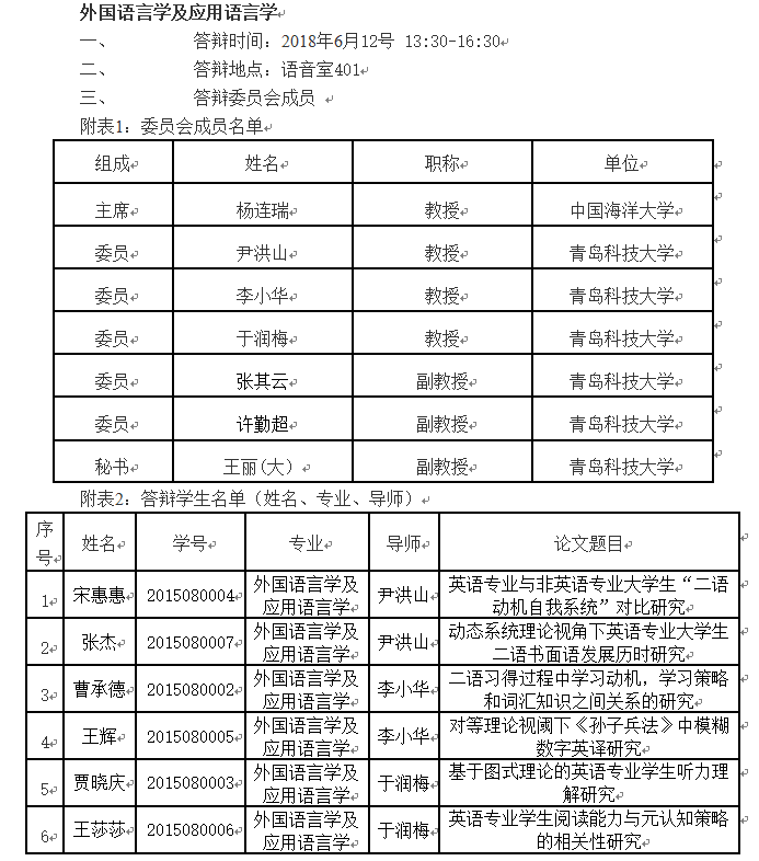 2018年7mmtv 硕士研究生春季答辩安排