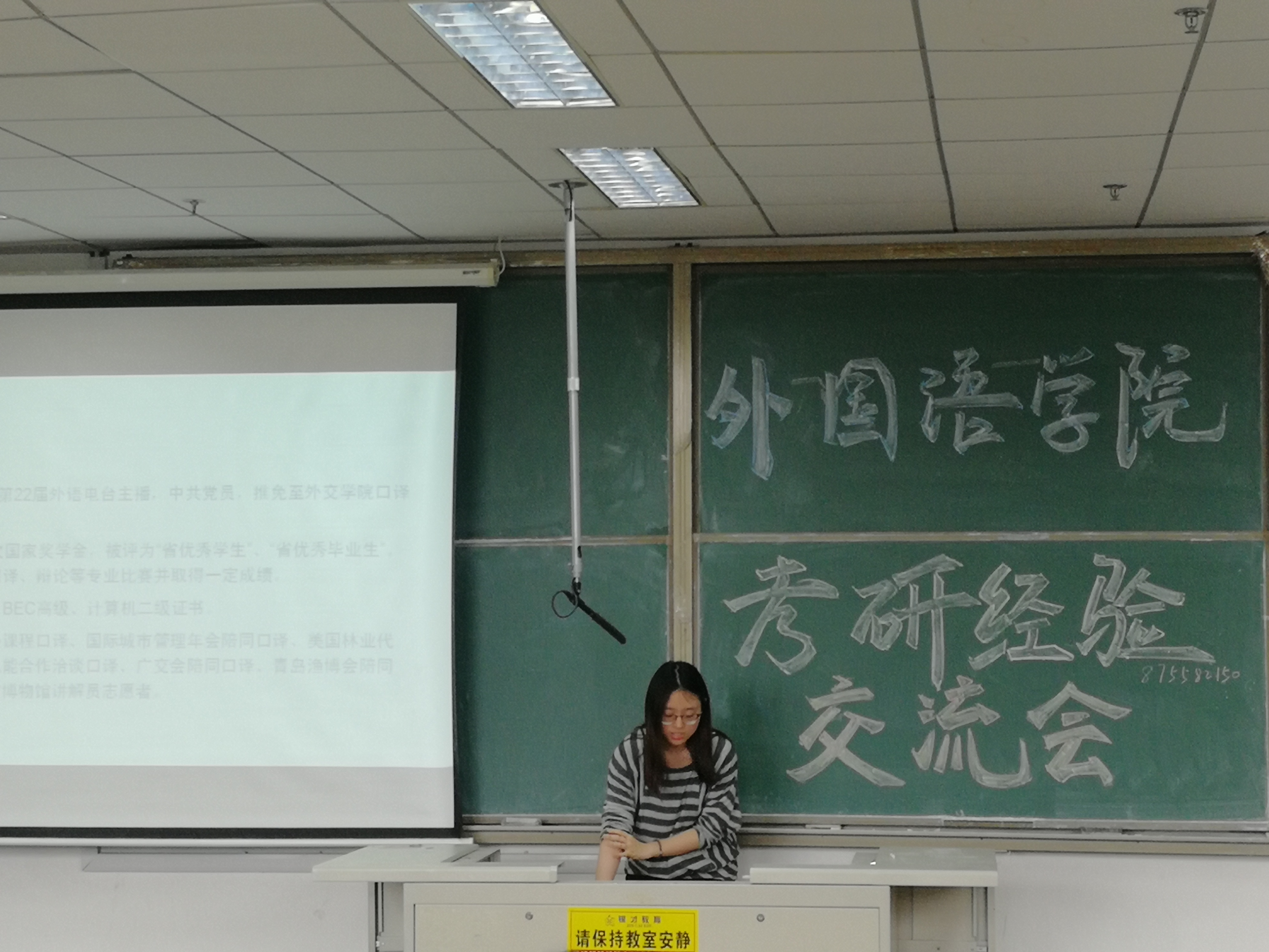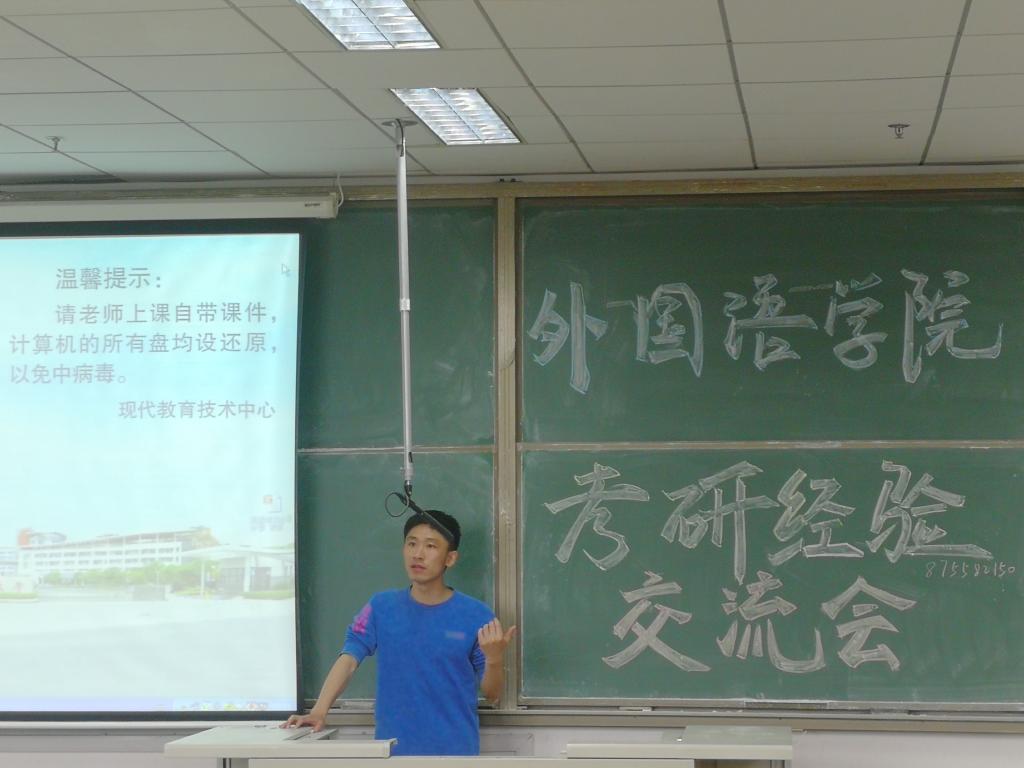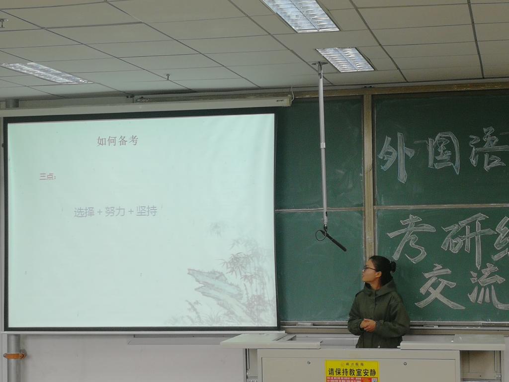 交流会结束后,贾明明对15级学生进行了考研动员。他从大学生考研、就业形势及学生的实际出发,进行了考研形势分析。要求大家要明确考研目的,理清就业和考研的关系,合理定位找到学习动力,鼓励同学们要抓住机会、把握目标,做一个有梦想的人。