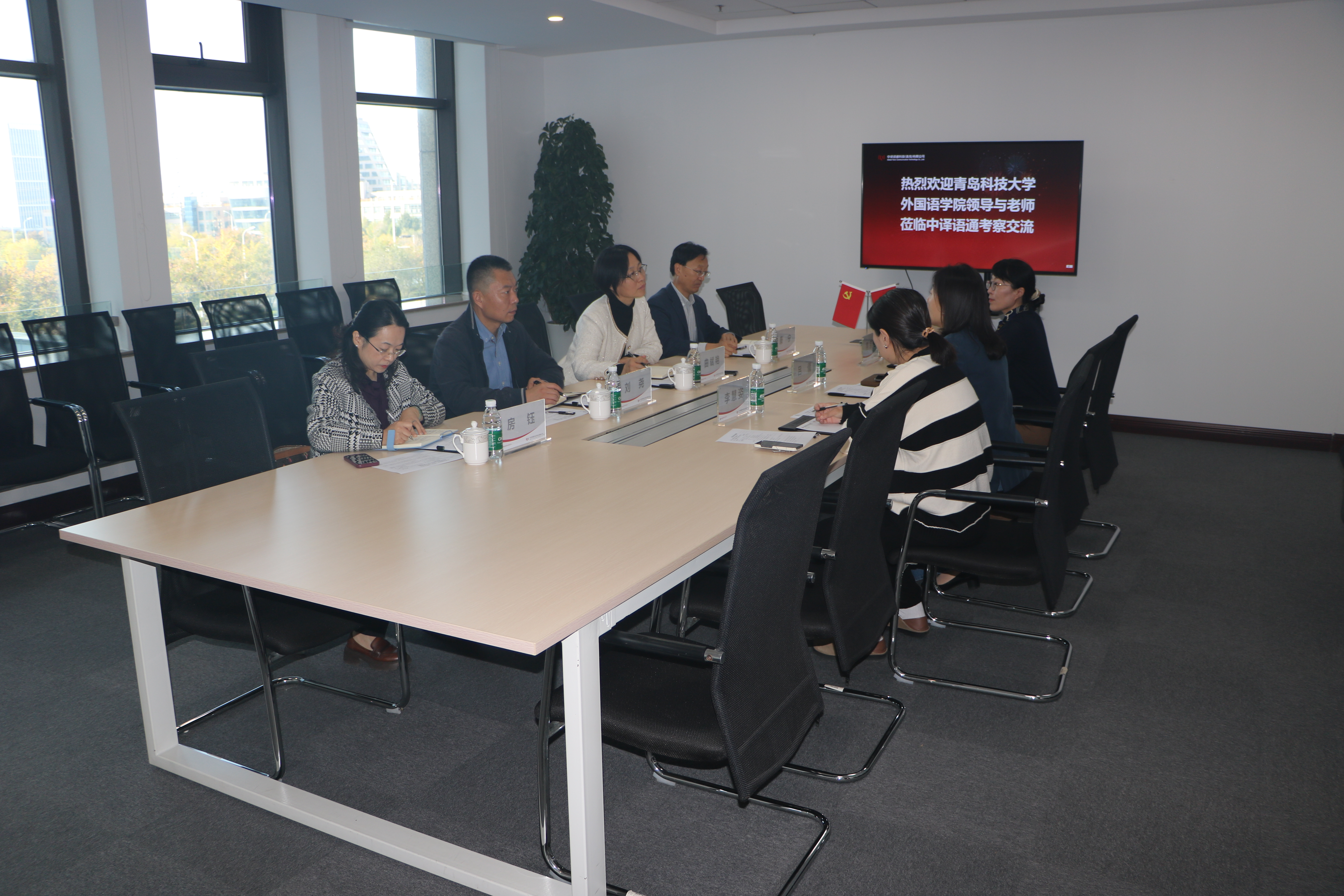 党委书记曲斌艳、副院长康宁、党委副书记刘尧和翻译硕士教育中心主任房钰一行赴中译语通科技(青岛)有限公司调研交流,并走访校友。