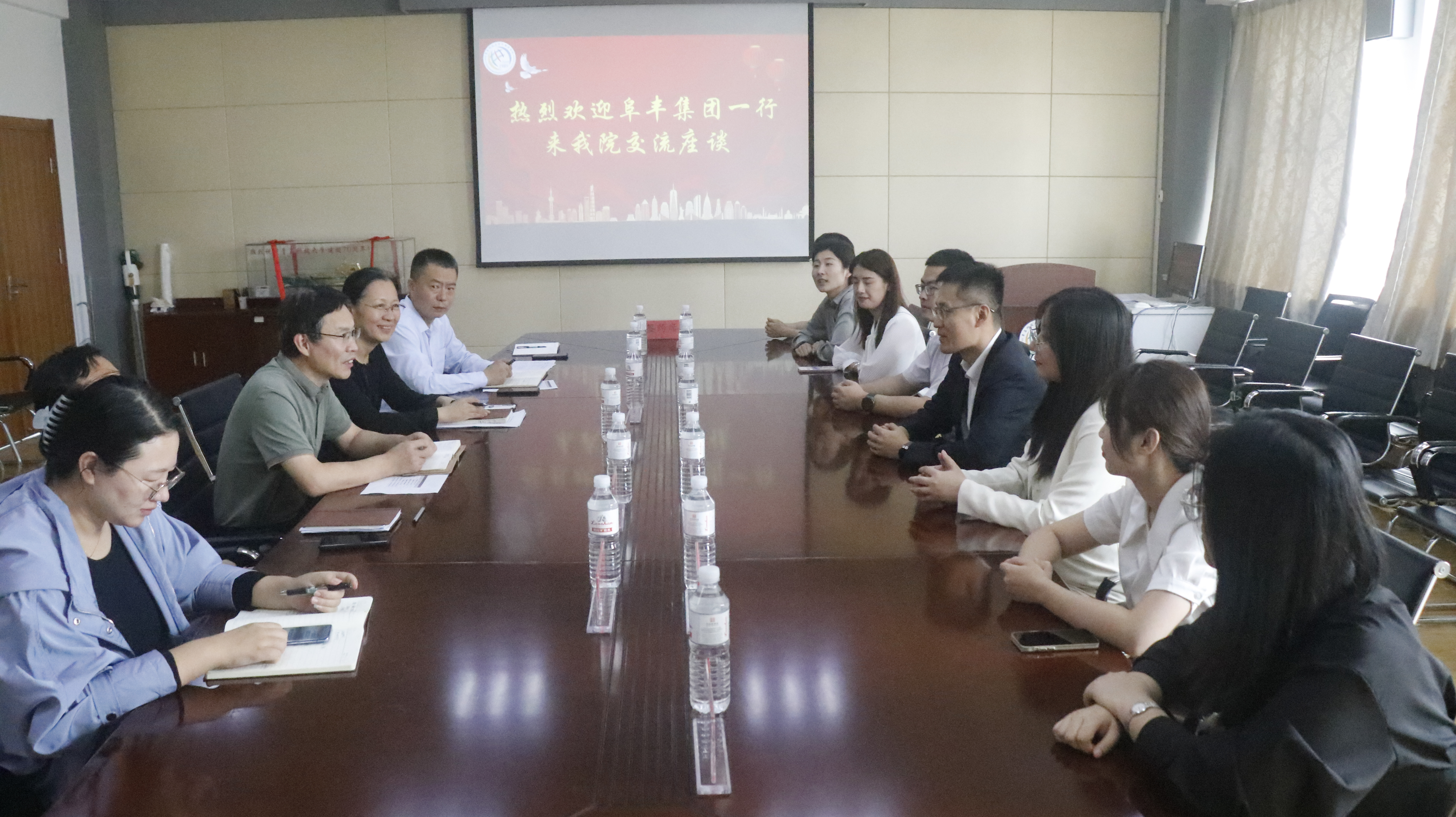 对公司的大力支持,介绍了阜丰集团的基本情况、发展规划、人才需求等方面的情况。双方与会人员紧紧围绕着学生实习实践、人才培养的知识和能力体系、校企合作领域等方面进行了了深入交流。