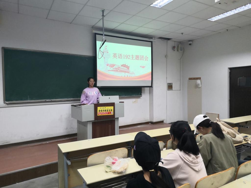 英语192团支部于2020年10月9日在明德楼427教室举办“学习先进精神,做新时代外院人”主题团日活动,全体团员参加。