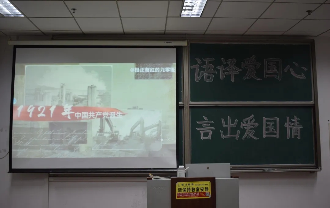 于4月16日在明德楼204教室开展"语译爱国心,言出爱国情”爱国教育视频主题活动,组织青年学生们共同观看爱国教育视频。