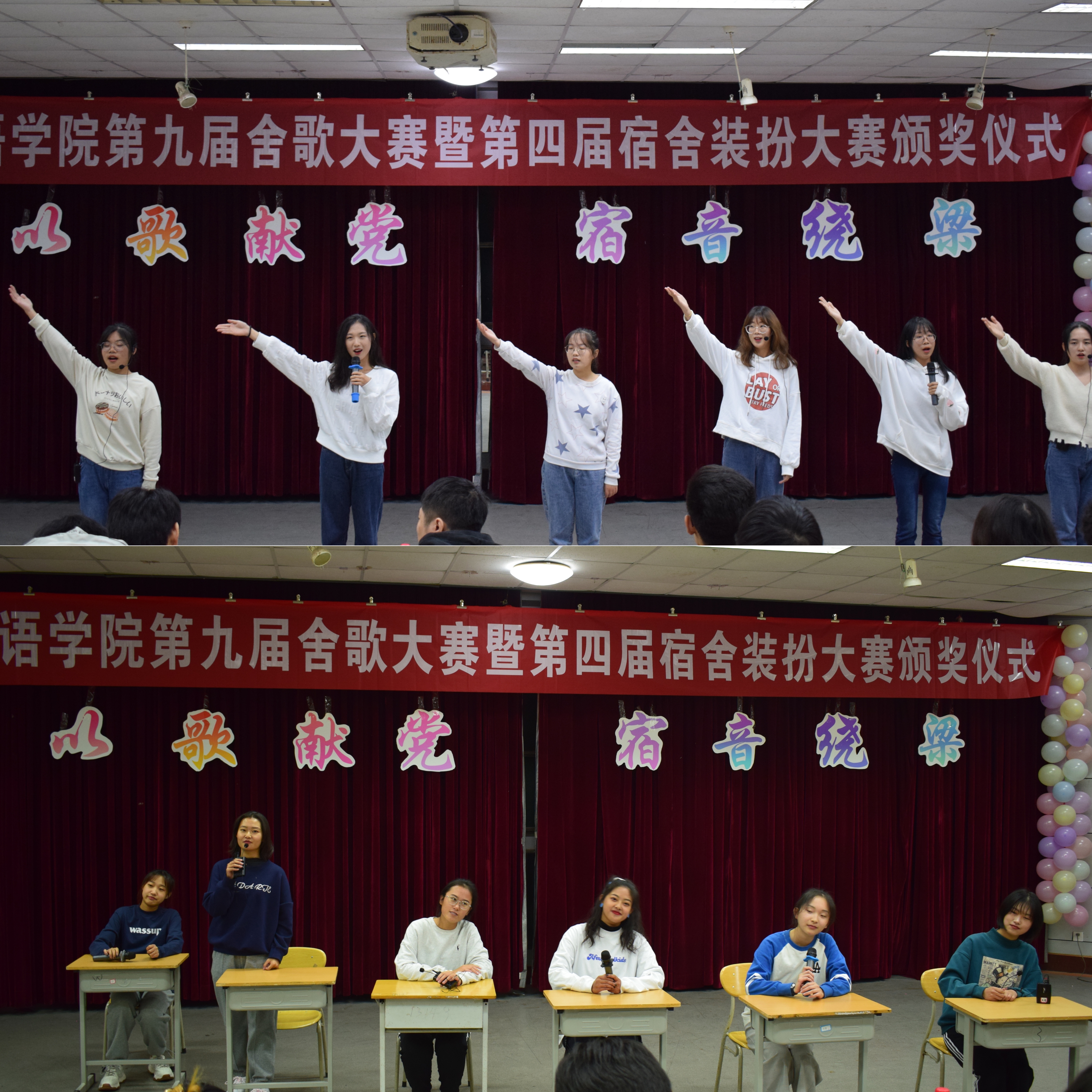 2021级新生于11月9日晚在南苑大学生活动中心举办第九届“以歌献党,宿音绕梁”舍歌大赛。