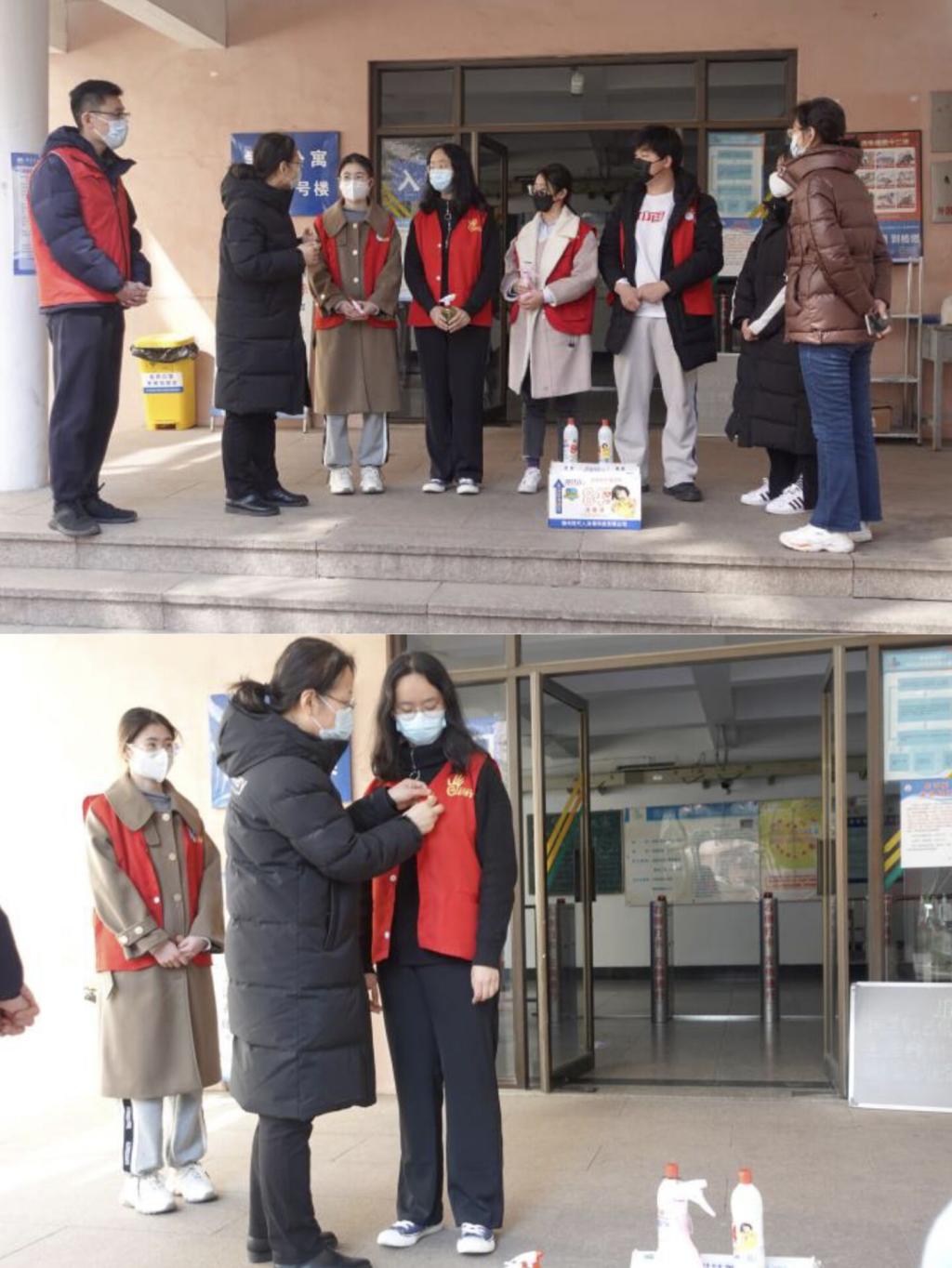 党委书记曲斌对当前疫情防控提出要求,强调要从严从紧落实各项防控措施,完善应急预案、做好学生健康状况排查、物资调配、加强教育培训等工作,筑牢校园安全防线,保障学生健康。曲书记亲自为党员佩戴党员徽章。号召党员突击队发挥党员先锋模范作用,让党旗高高飘扬在疫情防控最前沿、最紧处。