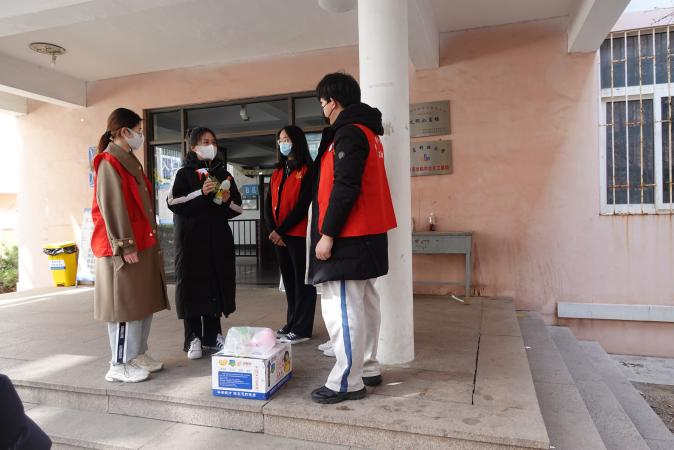 消杀完成后,校团委志愿者、校学生会主席团成员刘晓阳在南区四号楼前进行日常消毒专项培训,并发放了校团委调配的防疫物资,告知突击队成员们物资使用说明和疫情防控注意事项。