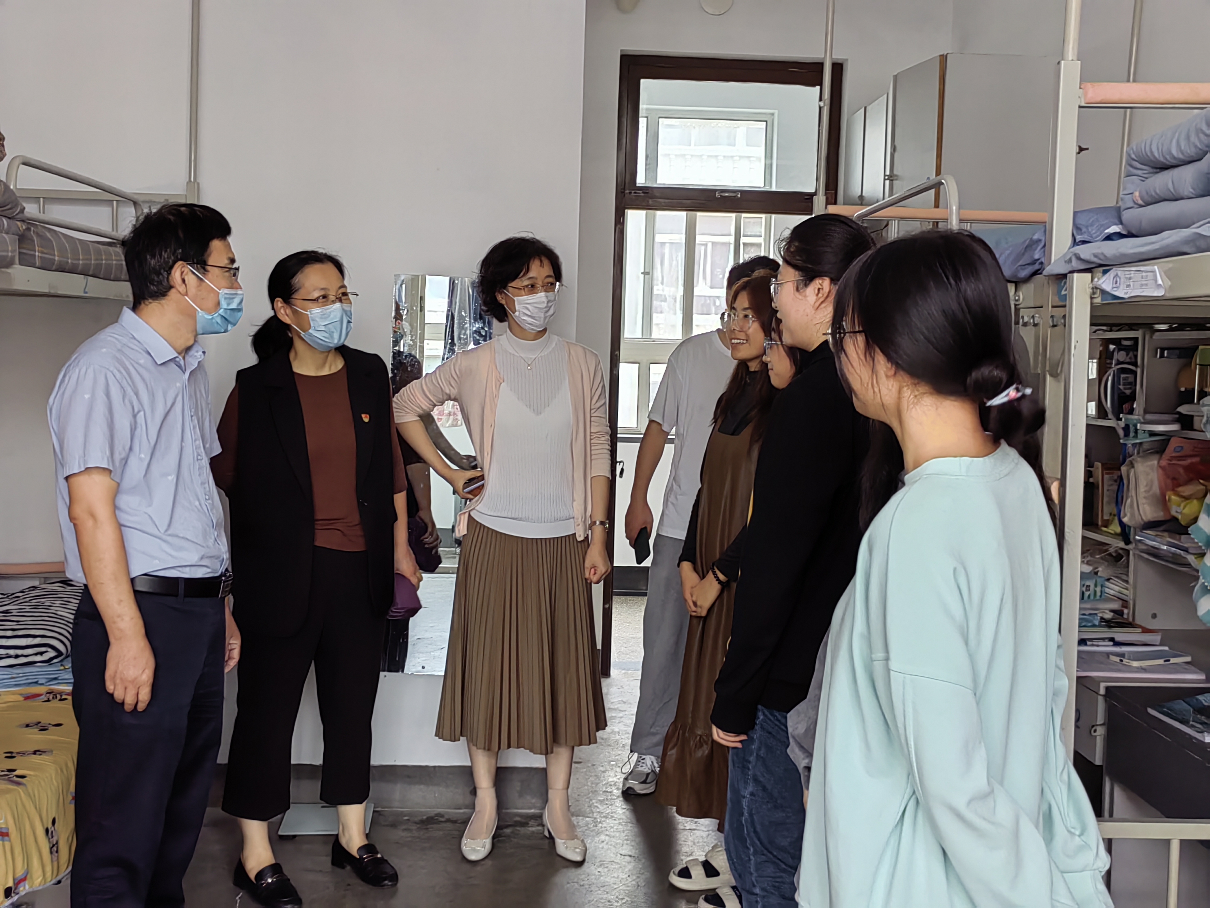领导老师们集体来到学生宿舍,为学生们送上节日的关怀。领导老师们在这个特殊的节日里,对新生入学一个月以来的生活学习情况等表示关切,并叮嘱同学们做好自我防护工作,同心协力共抗疫情。同学们也对院领导的慰问表达了衷心的感谢。