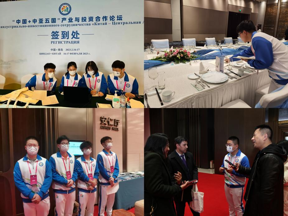 志愿者在2月14日进行了各个会场的分工以及相应的培训,并于2月15日上岗服务。43名志愿者共分成海景花园、海尔洲际、府新大厦和国际会议中心四个地点的志愿者队伍,分别担任酒店嘉宾报道、核酸检测、贵宾会见宴请、会场会务服务、对口接待外宾等相应事项。2月17日,大部分志愿者集中到分论坛会场进行服务,在农业、工业及能源分会场帮助会场工作人员和主办方进行论坛事项的排演及辅助。