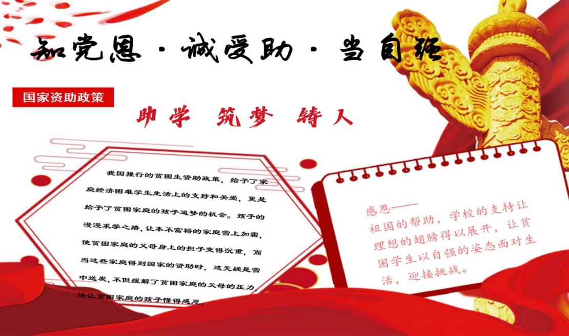 多措并举,紧紧围绕立德树人根本任务,把促进家庭经济困难学生成长成才作为学生资助工作的出发点和落脚点,充分发挥学生资助育人功能,深入开展励志教育、诚信教育、感恩教育等活动,培养受助学生自立自强、诚实守信、感恩奉献、勇于担当的良好品质,教育引导广大青年学生听党话、感党恩、跟党走,努力奋斗,不负韶华。