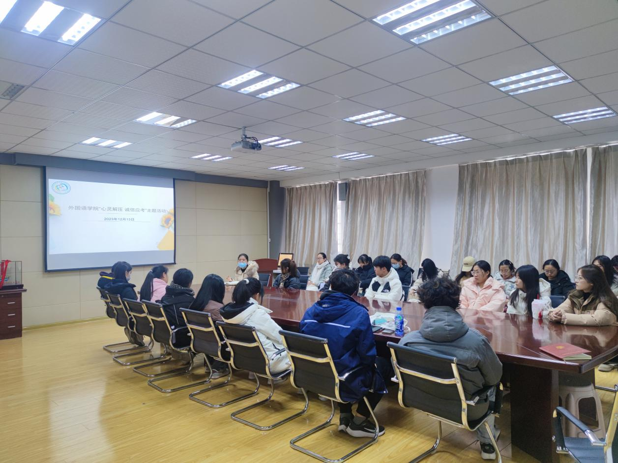 于12月13日在外院517会议室召开“心灵解压,诚信应考”主题会议,辅导员马耀青老师以及各班班委参加了会议。