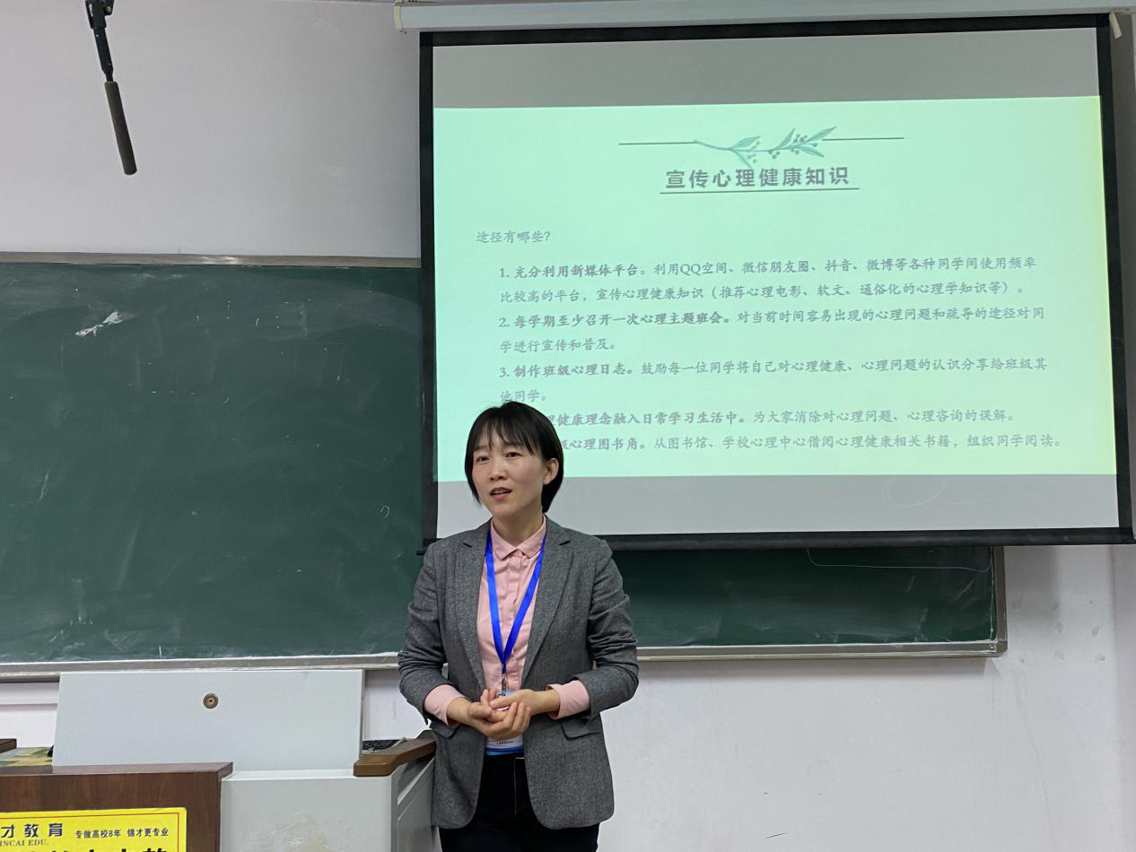 培训会上,李海玲围绕“解开心灵枷锁,遇见未知自己”的主题展开讲解,向同学们解释了心理异常与心理正常的两种心理基本状态,明确了心理咨询的受众群体。随后,李海玲对“心音使者”进行了角色定位,使各位心音使者充分了解“我是谁”,“我要做什么”。她通过“眼、耳、手、心”四个方面向大家讲解了如何进行心理危机的鉴别与分析,同时举出辅助他人解决心理问题的方法与多种简单易行的心理活动。