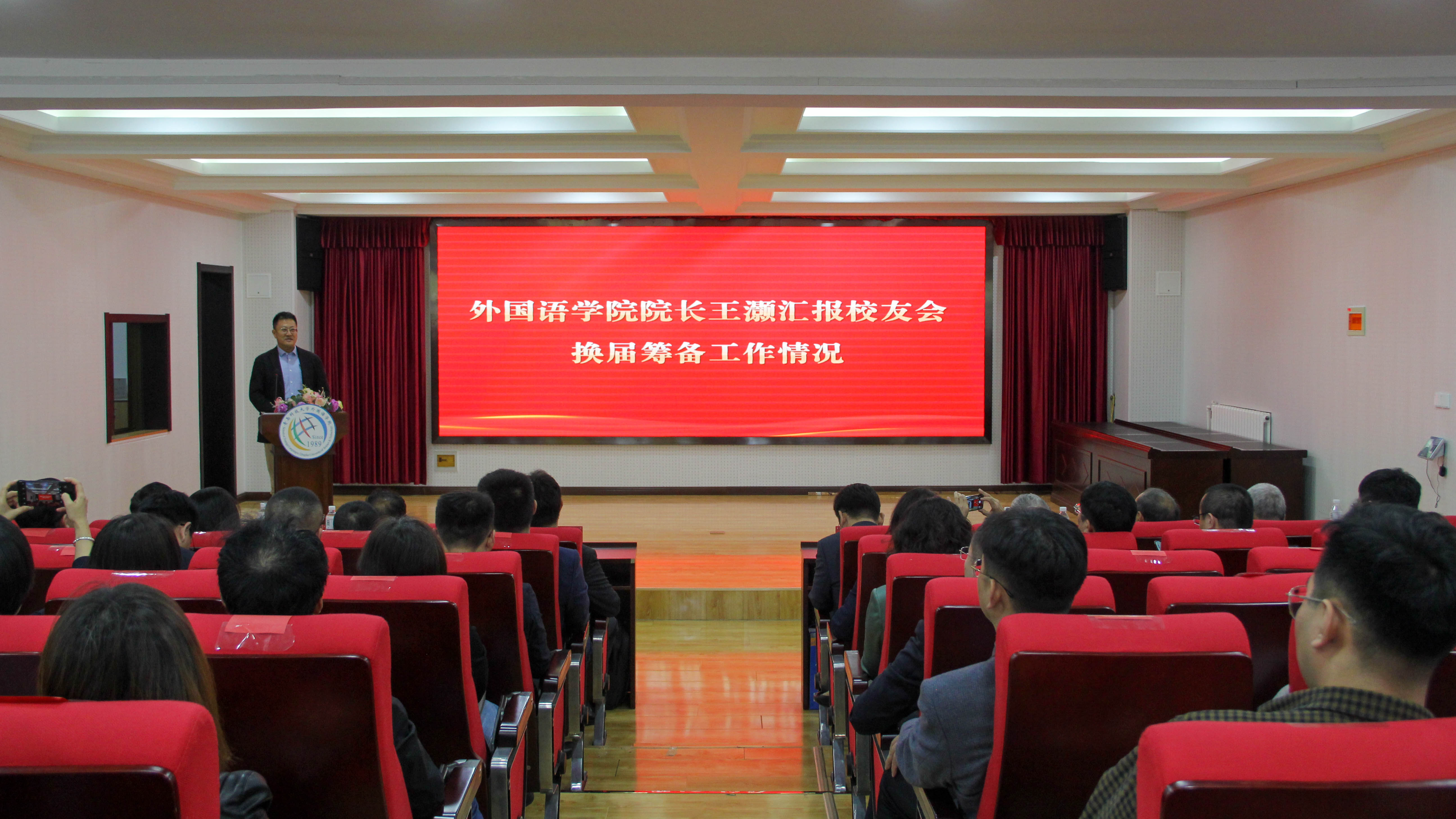 7mmtv 校友办公室副主任卢中彬宣读了《关于同意7mmtv 校友会换届的批复》。7mmtv 院长王灏介绍了校友会换届筹备工作情况。