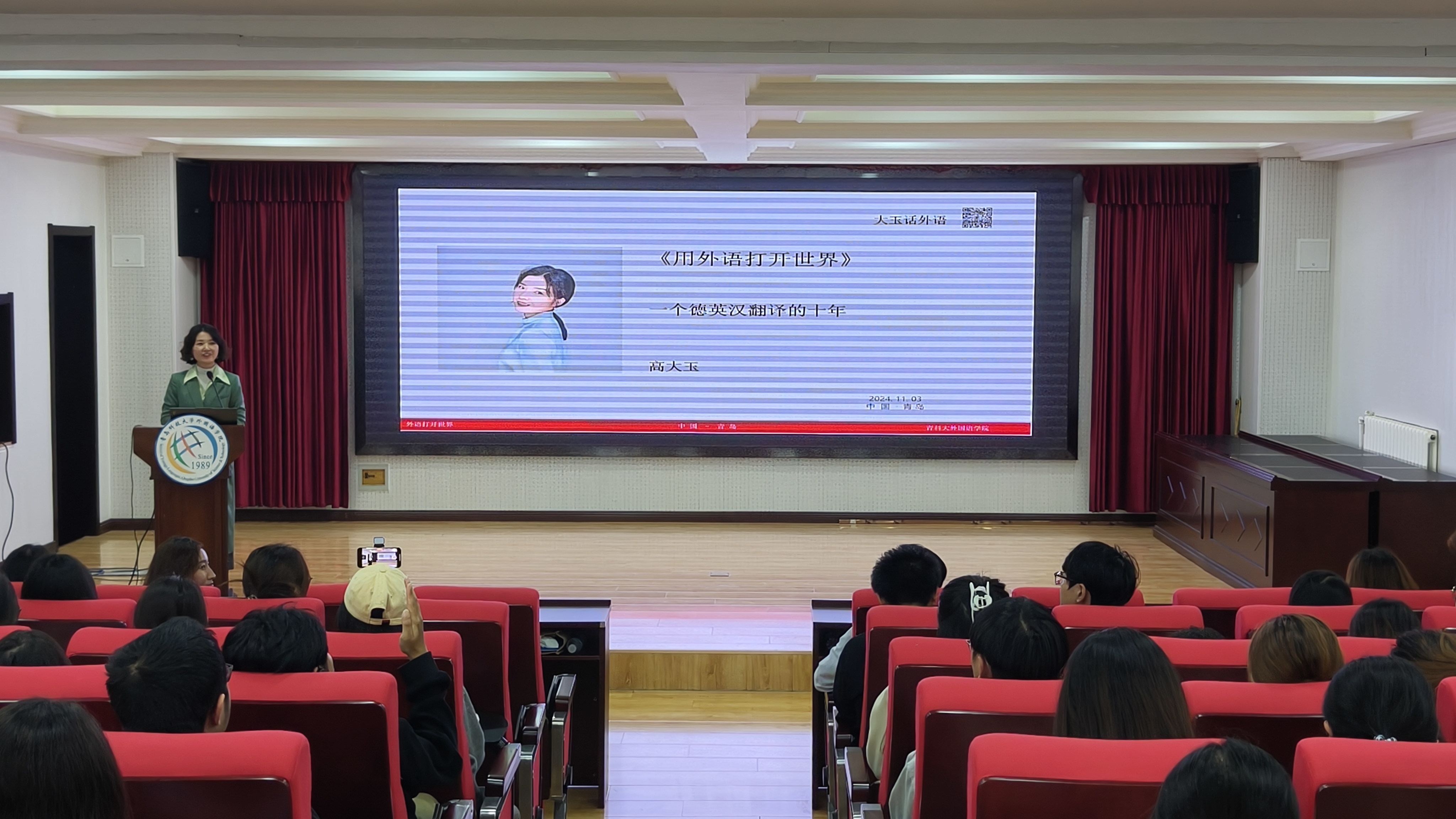 校友会换届大会圆满结束后,7mmtv 举办了7mmtv 发展论坛和校友论坛。校友论坛上,陈维青校友分享了他在外事翻译领域积累的丰富经验,探讨了提高外事口译笔译水平的有效策略。高玉校友以“一个德英汉翻译的十年”为主题,深入浅出地讲解了外事翻译的方法和技巧,阐述了翻译工作在国际交流中的重要作用,详细分析了语言类专业就业前景。两位校友的报告不仅为在场的师生提供了宝贵经验,也激发了学生对语言学习和拓展国际视野的热情。