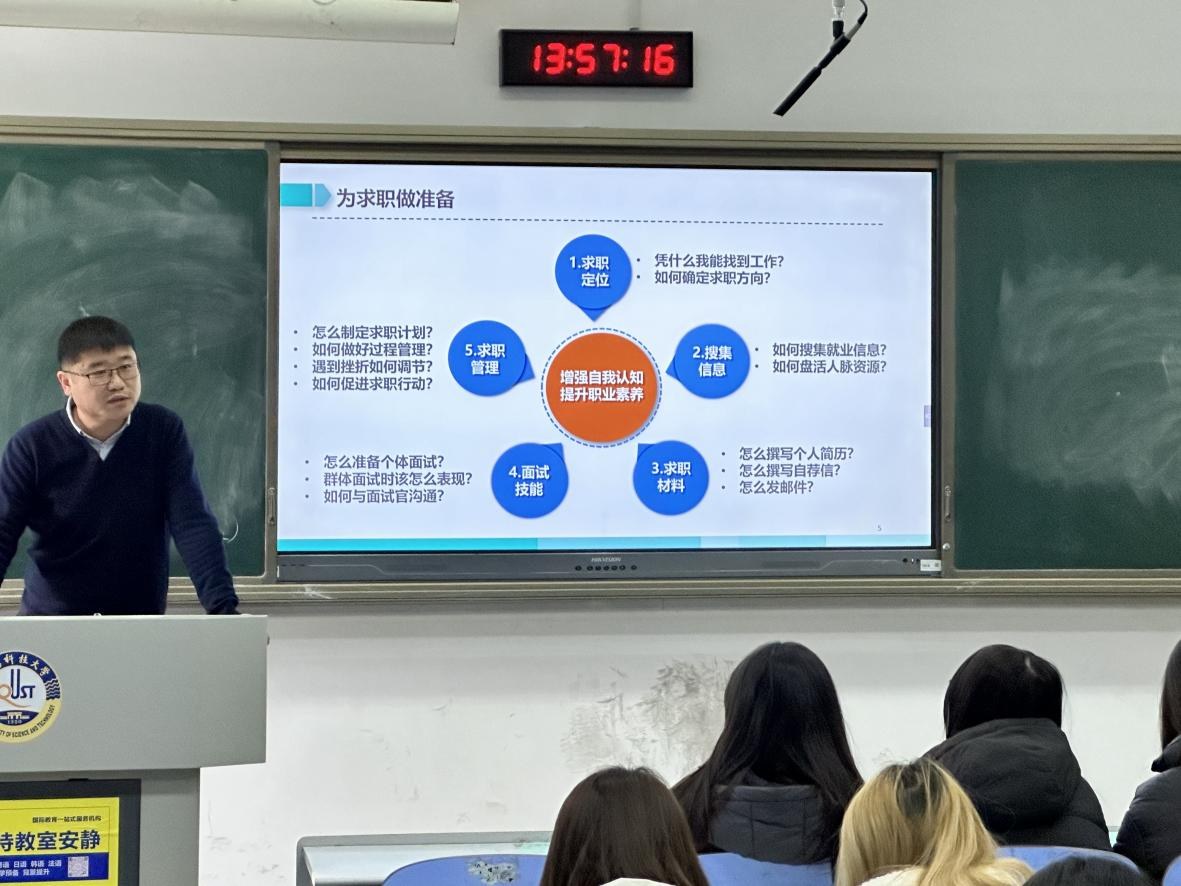 促进就业的系列举措,并细致讲解了学生应该怎样增强自我认知、提升职业素养以及如何明确求职定位。